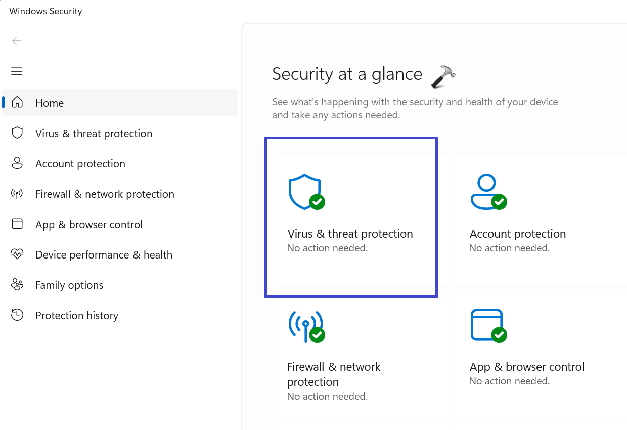 2. Klicken Sie dann auf „Viren- und Bedrohungsschutz“.