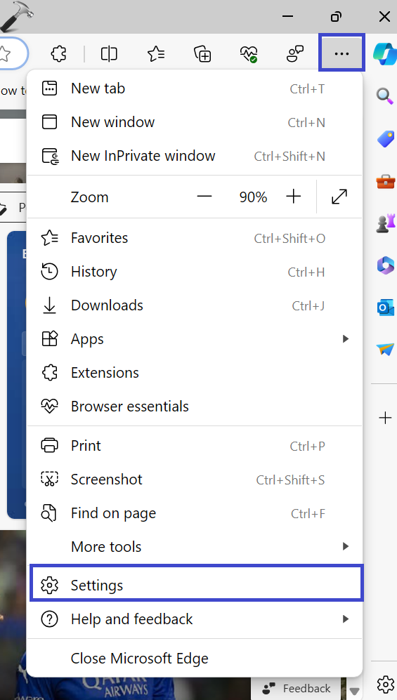 1. Öffnen Sie Microsoft Edge. Klicken Sie auf“…” Menütaste und wählen Sie „Einstellungen“.