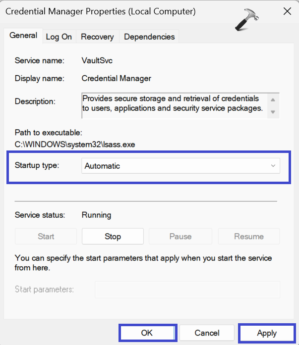 Fix 6: Stellen Sie den Credential Manager-Dienst auf „Automatisch“ ein