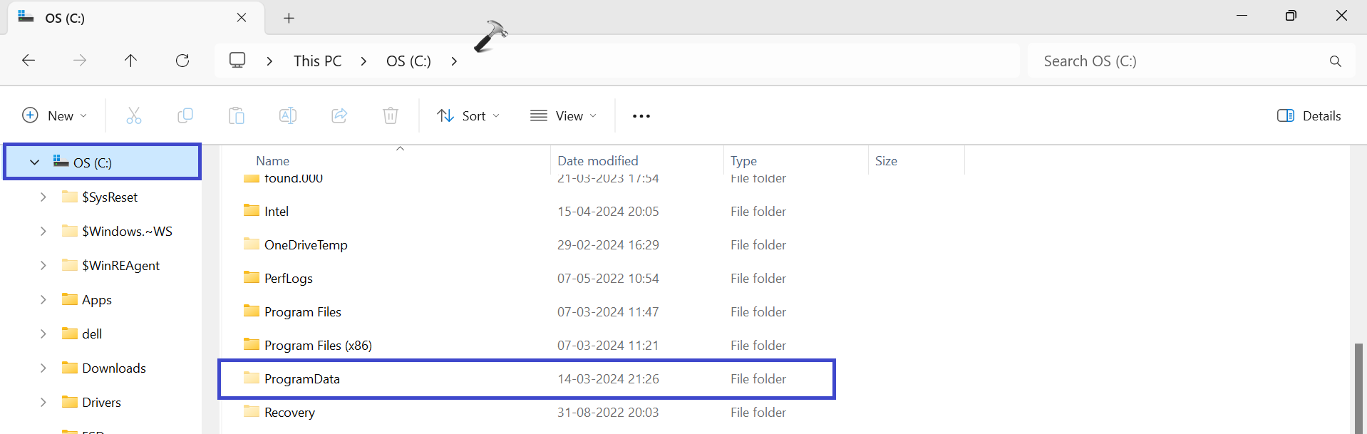 1. Öffnen Sie den Datei-Explorer und navigieren Sie zu „C: ProgramData”-Verzeichnis.