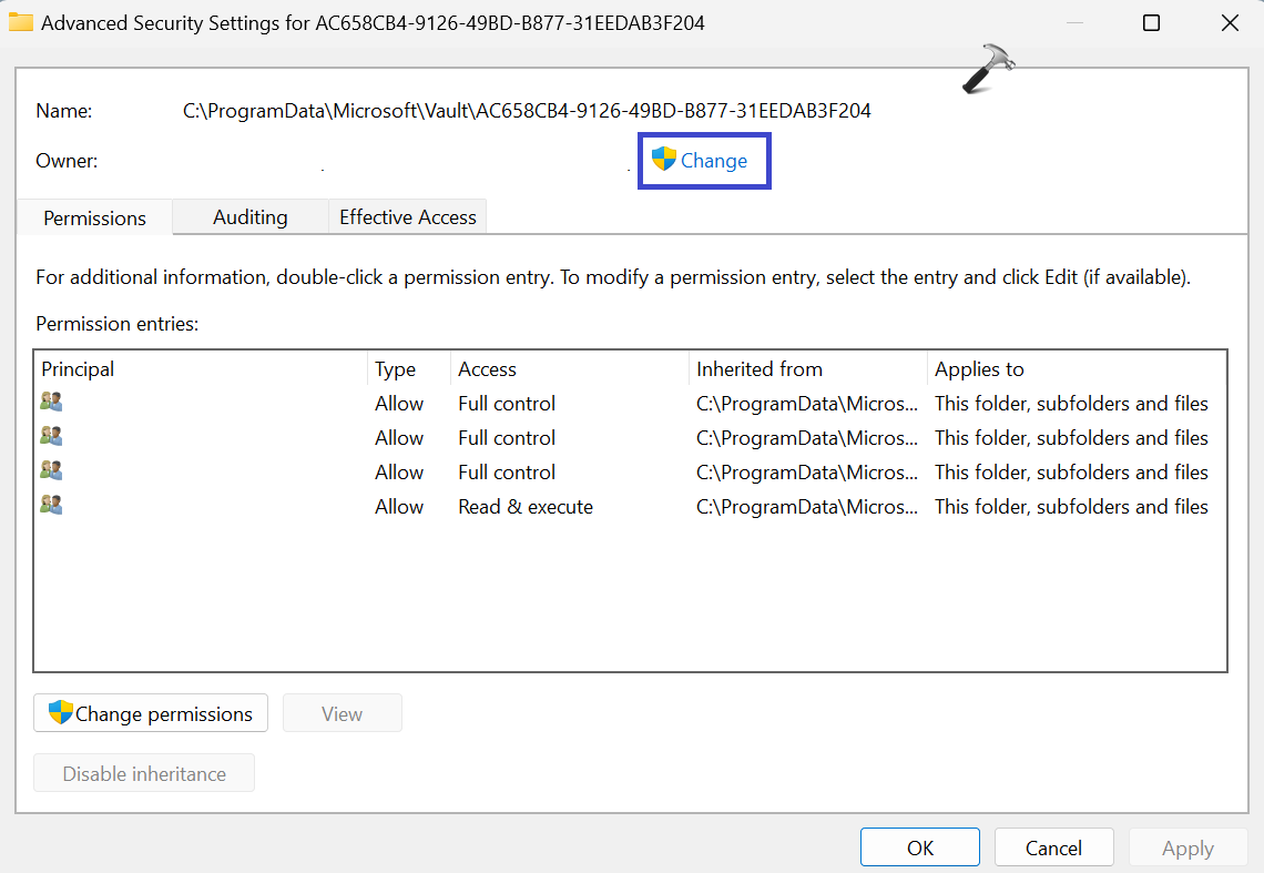Manchmal funktioniert Credential Manage nicht, weil dem Vault-Verzeichnis bestimmte Berechtigungen fehlen. Befolgen Sie dazu die folgenden Schritte: