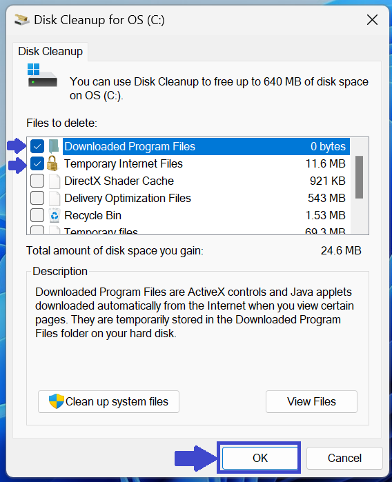 4. Wählen Sie die Dateien aus, die Sie löschen möchten, und klicken Sie auf OK.