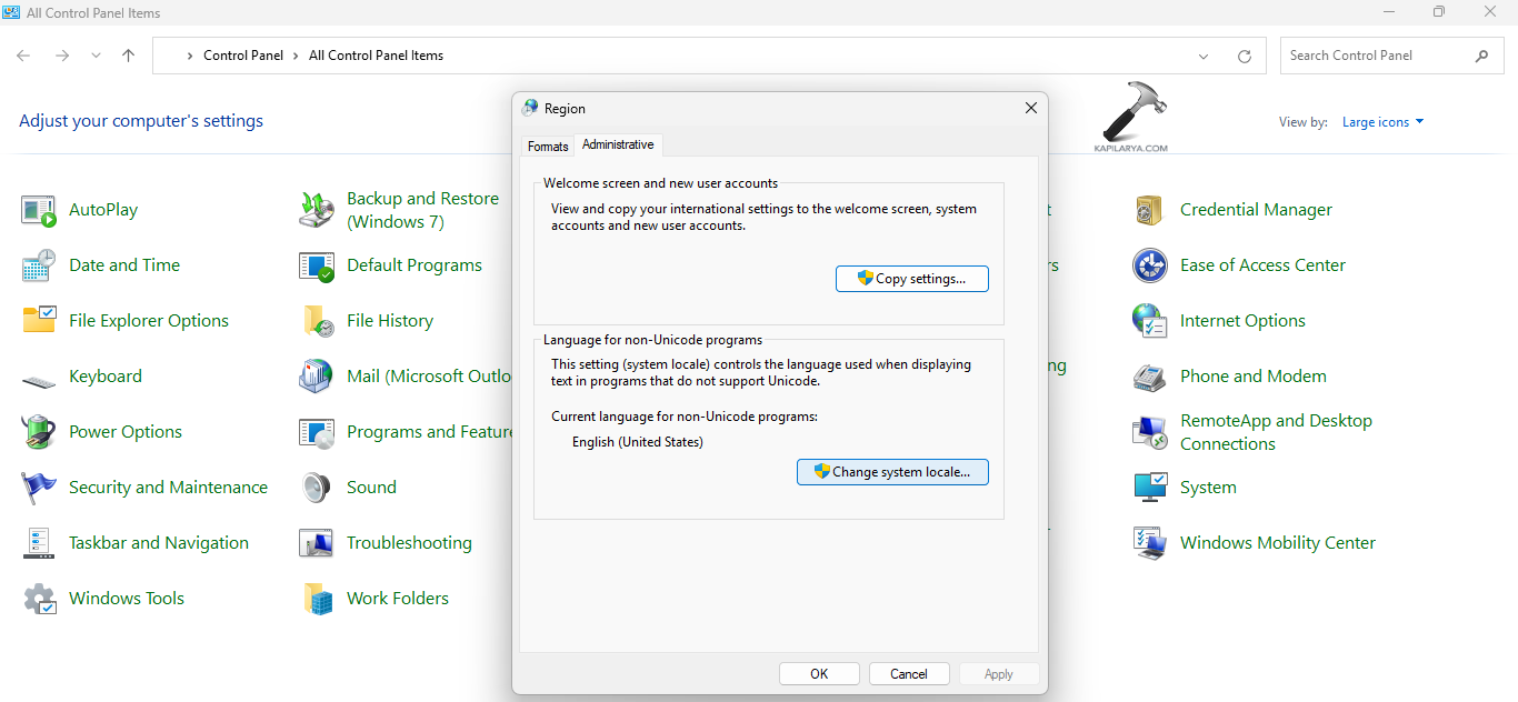 Wenn das Systemgebietsschema nicht richtig eingestellt ist, kann dies zum Fehlercode 0xc0000142 führen. Befolgen Sie daher die folgenden Schritte, um das richtige Systemgebietsschema festzulegen.