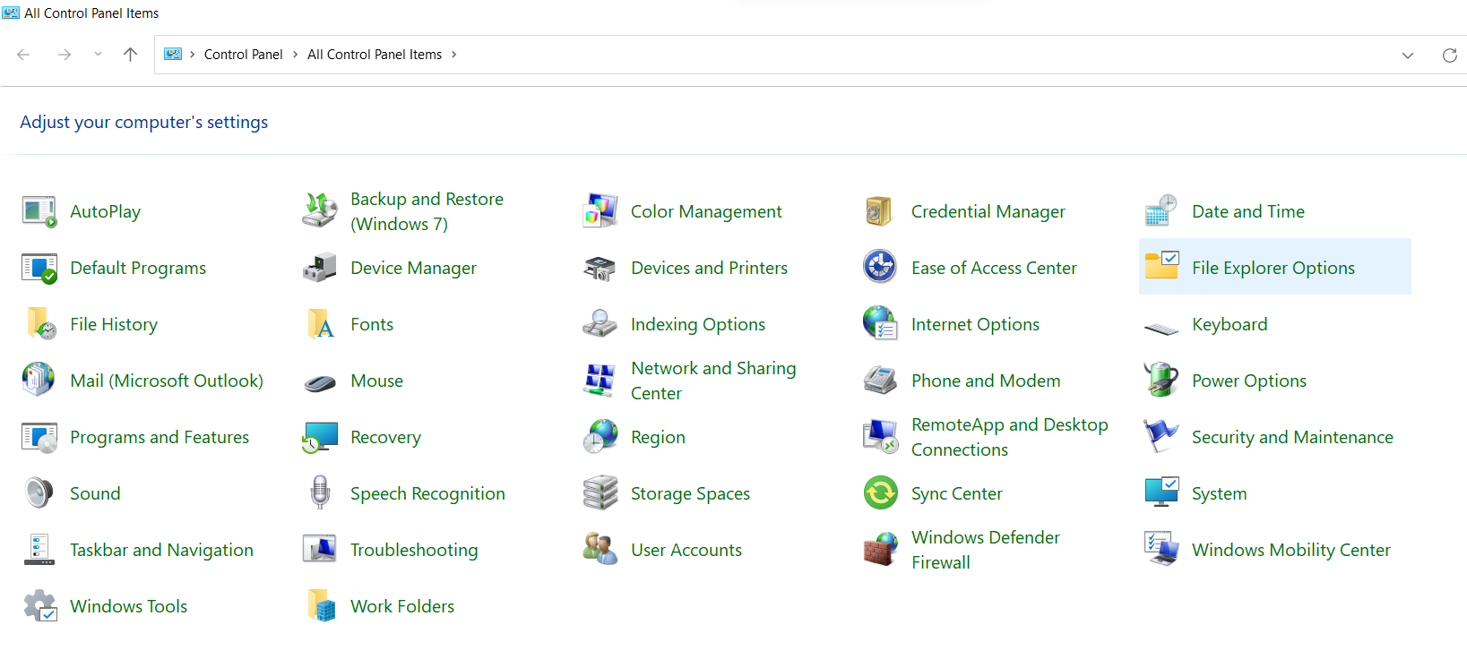 Schritt 1: ÖffnenBedienfeldWechseln Sie im Startmenü und ändern Sie die Ansicht von der Kategorie in große Symbole. Dann auswählenDatei -Explorer -Optionen.