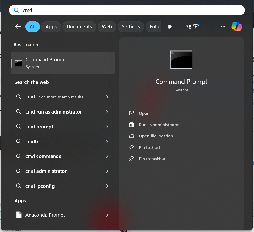 STEP1:Öffnen Sie das Startmenü. Geben Sie dann "CMD" ein. Drücken Sie die Eingabetaste, um fortzufahren.