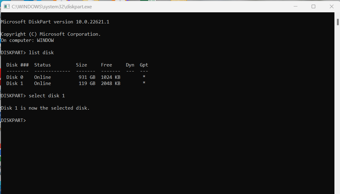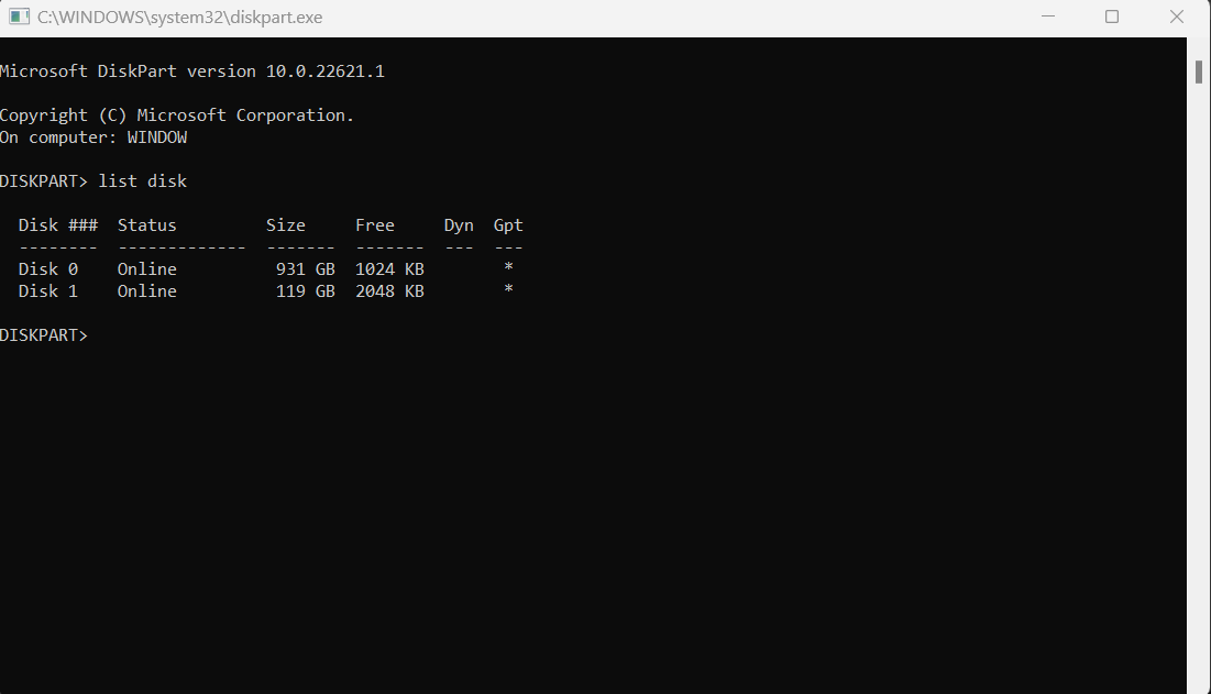 Schritt 3:Hier müssen Sie tippenListendisk. Drücken Sie die Eingabetaste. Stellen Sie hier sicher, dass Ihr Speichergerät aufgeführt ist.