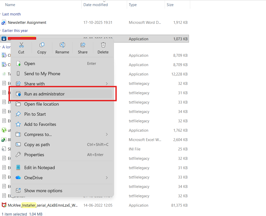 - Klicken Sie mit der rechten Maustaste darauf und wählen Sie Als Administrator ausführen.