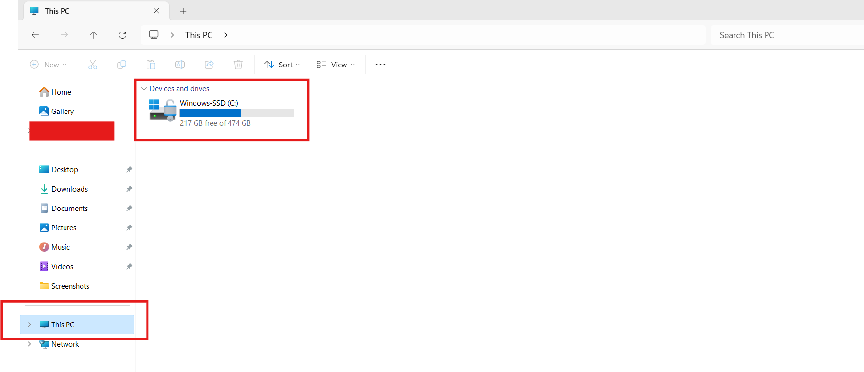 - Öffnen Sie den Datei-Explorer, gehen Sie zu „Dieser PC“ und überprüfen Sie den freien Speicherplatz auf dem Systemlaufwerk.