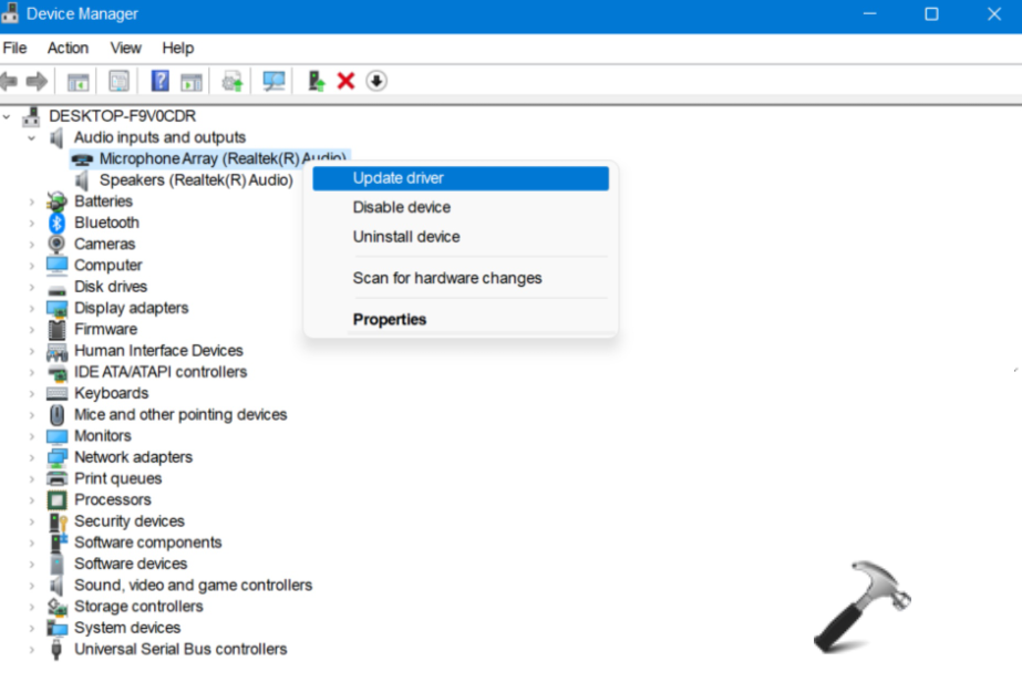 3.Klicken Sie nun mit der rechten Maustaste aufMikrofonund wählenTreiber aktualisierenaus dem Kontextmenü.