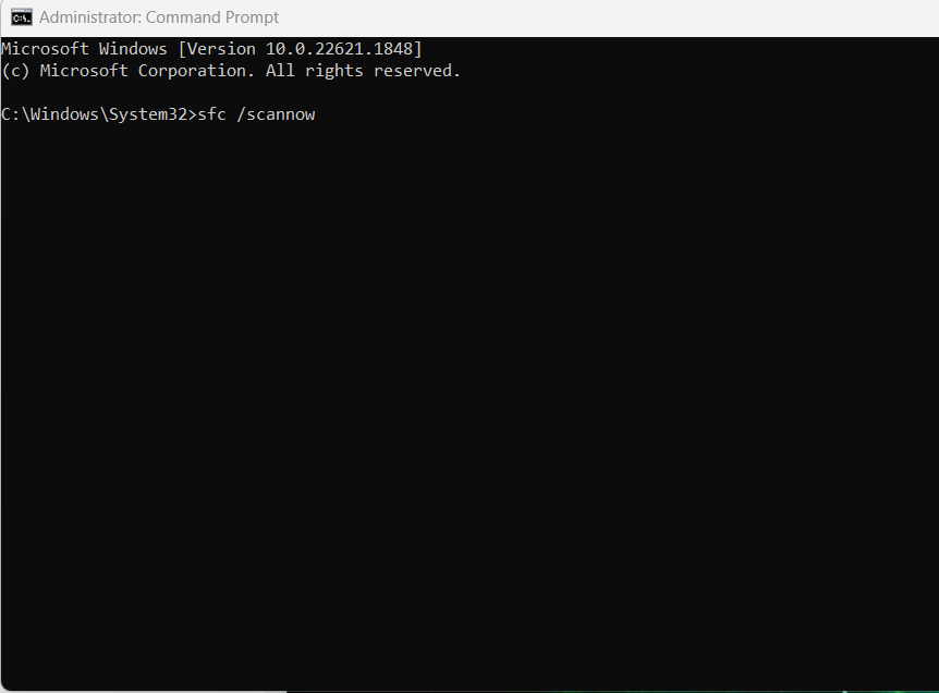 2. Geben Sie den Befehl ein:sfc /scannow