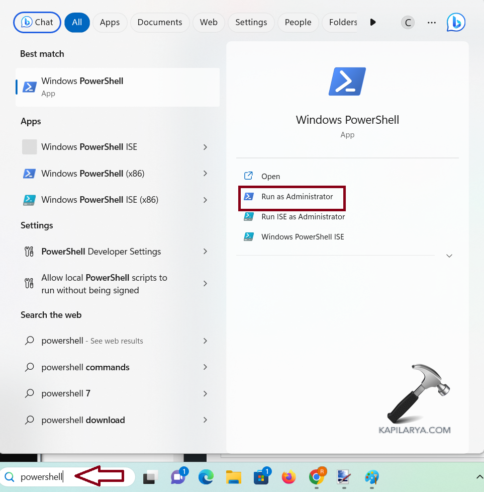 1. Geben Sie „Powershell“ in die Suchleiste ein und öffnen Sie „Windows PowerShell“, indem Sie auf „Als Administrator ausführen“ klicken.
