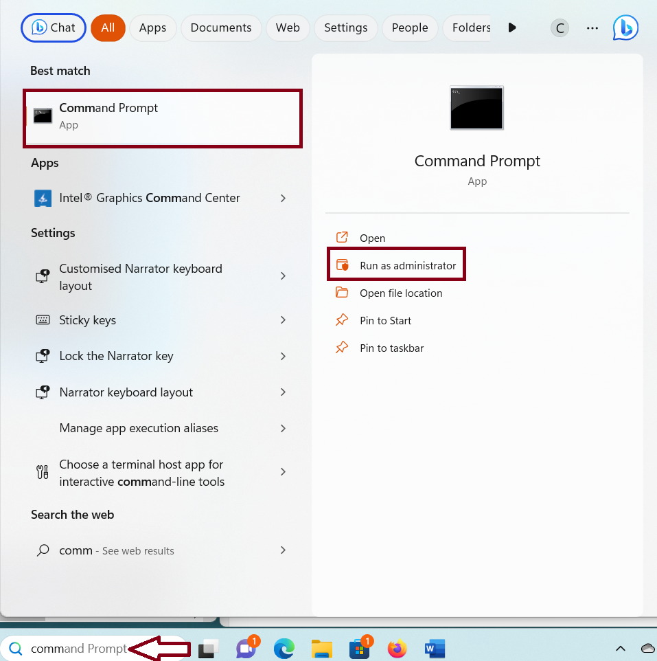 1. Öffnen Sie die Eingabeaufforderung, indem Sie in der Suchleiste danach suchen.