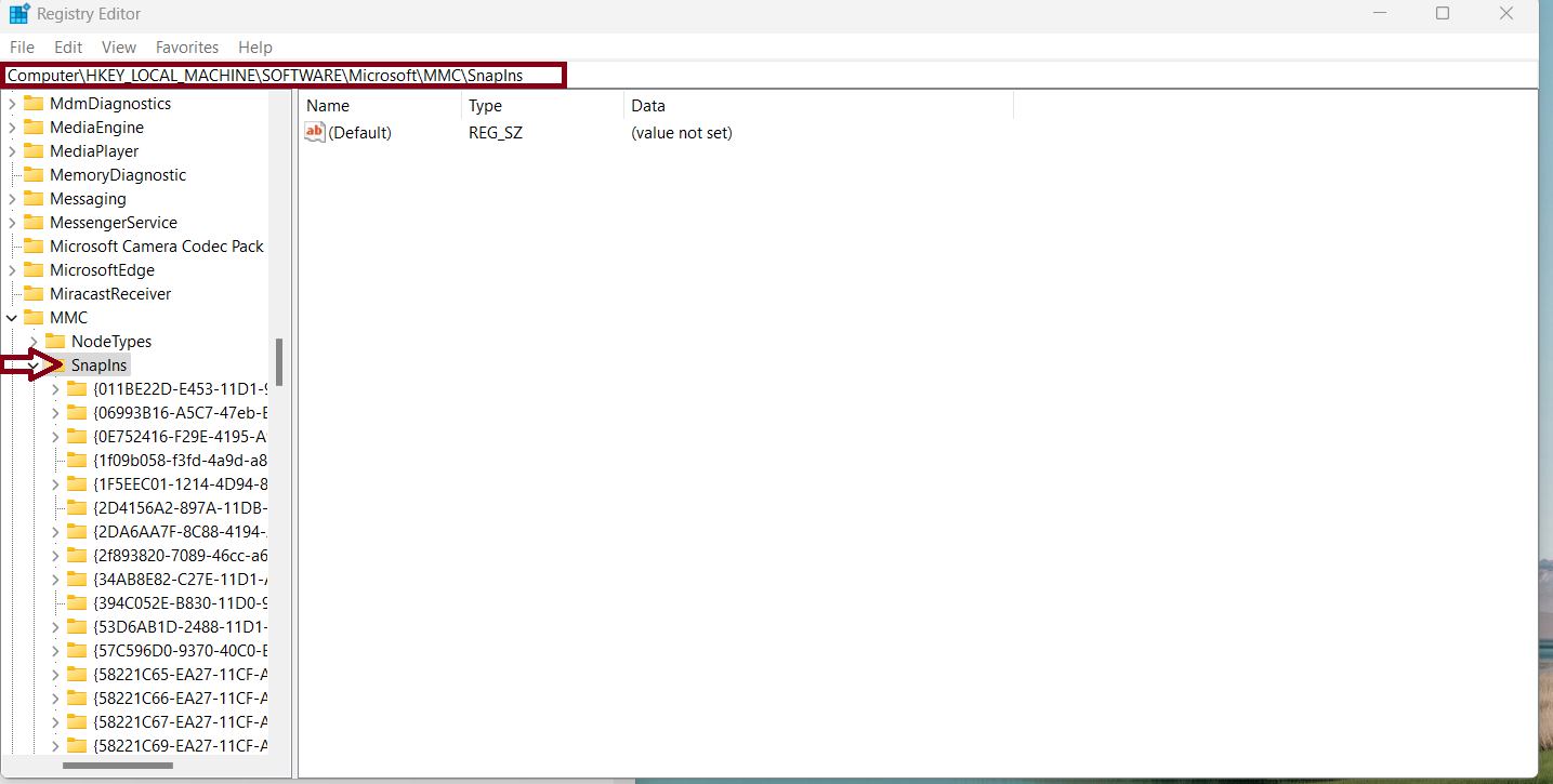 HKEY_LOCAL_MACHINESOFTWAREMicrosoftMMCSnapIns