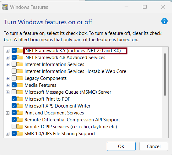 Fix 4: Aktivieren Sie Microsoft .NET Framework