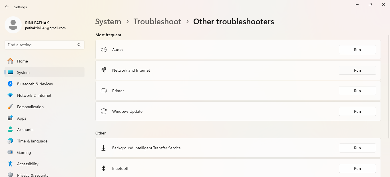 Schritt 1-Gehen Sie zunächst zu Einstellungen > System > Fehlerbehebung > Andere Fehlerbehebung.