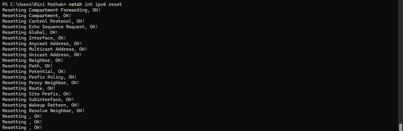 netsh int ipv6 reset