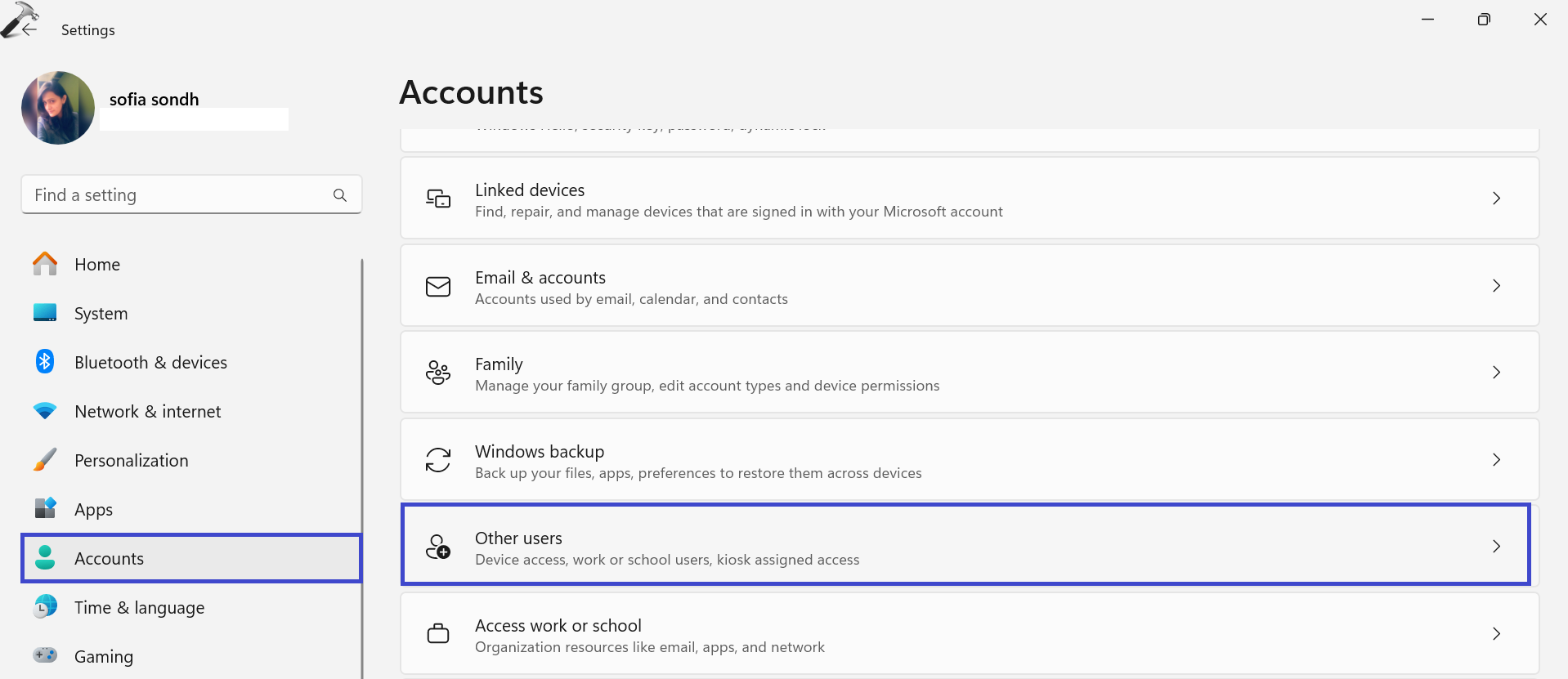 1. Navigieren Sie zu „Einstellungen => Konten => Andere Benutzer“.