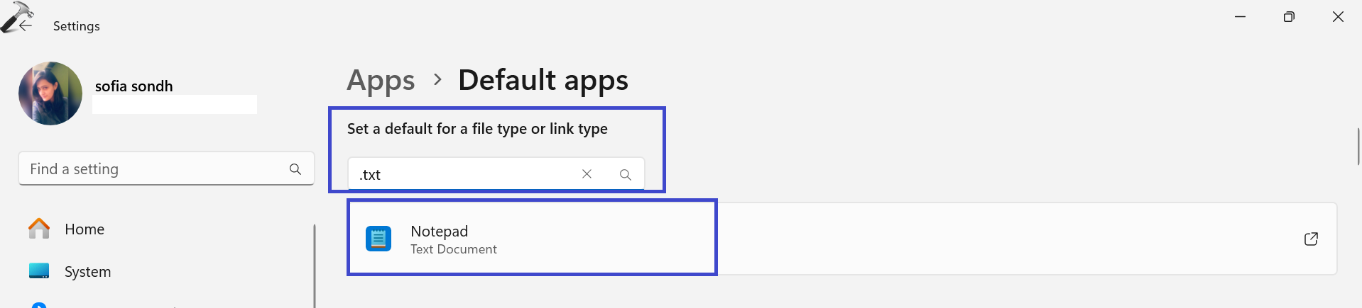 3. Klicken Sie nun auf die Standard-App, die für den Dateityp „.txt“ aufgeführt ist.