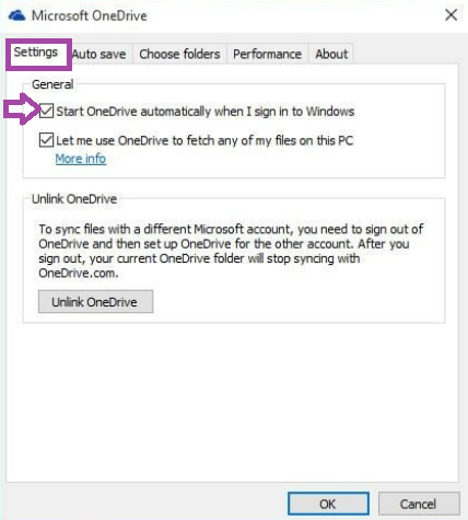 Fix 4: Überprüfen Sie die Starteinstellungen von OneDrive