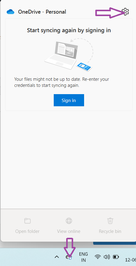 1. Klicken Sie im Startmenü auf das OneDrive-Symbol und dann auf Einstellungen.