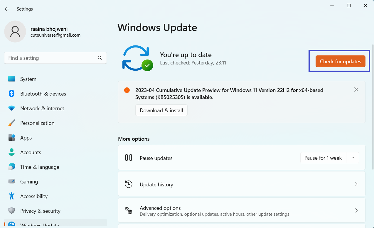 - Klicken Sie aufWindows-Updateund dann klickenSuchen Sie nach Updates.