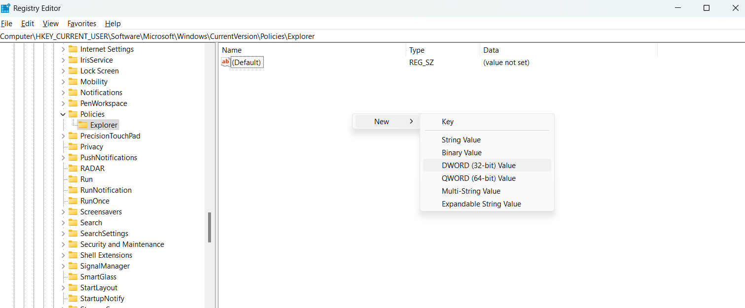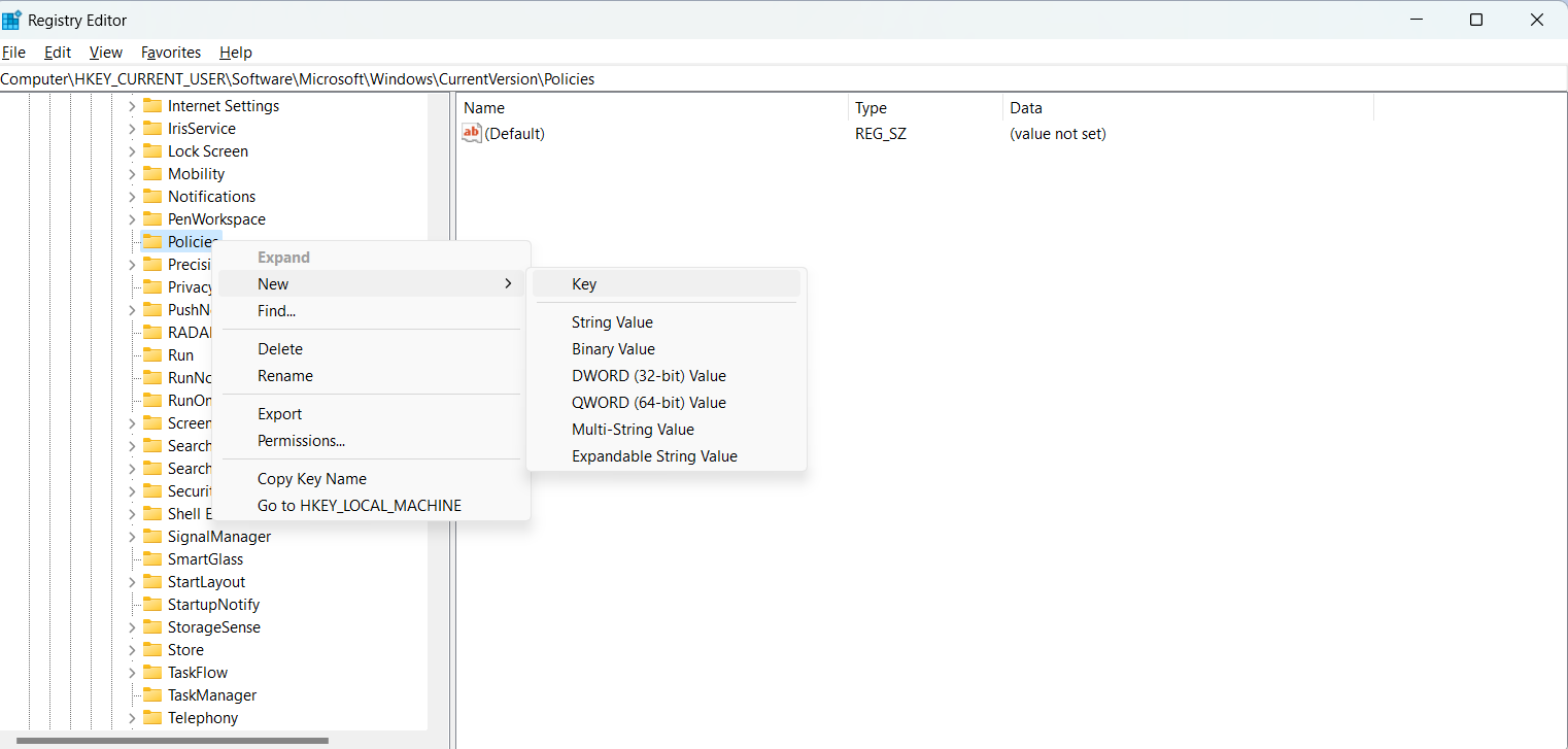 HKEY_CURRENT_USERSoftwareMicrosoftWindowsCurrentVersionPolicies