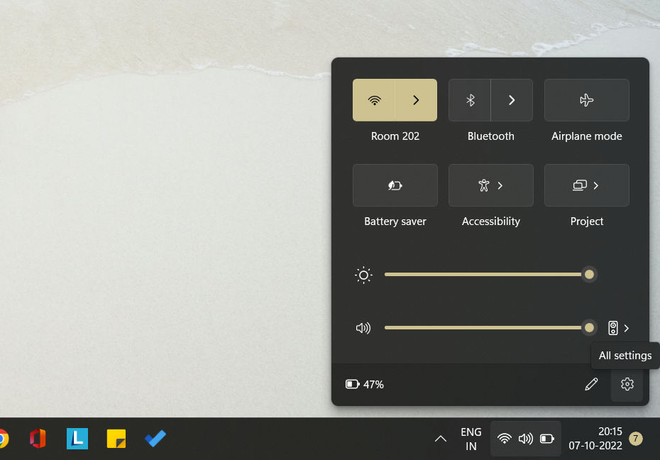 Alternativ können Sie die Taskleiste verwenden. Klicken Sie auf die Taskleiste und Sie können die App öffnen, indem Sie auf das Einstellungssymbol in der unteren rechten Ecke klicken.