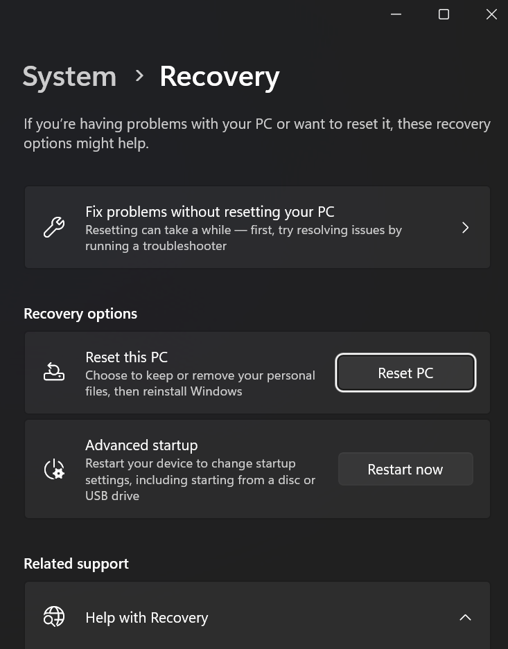 - WählenErweiterte Optionengefolgt vonFehlerbehebungunter „Erweiterte Fehlerbehebung“.