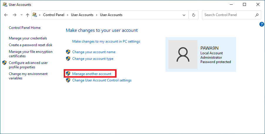 Fix 2: Ändern Sie das lokale Benutzerkennwort in der Systemsteuerung