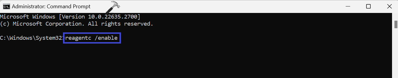 3. Um WinRE erneut zu starten, kopieren Sie den folgenden Befehl und fügen Sie ihn ein: