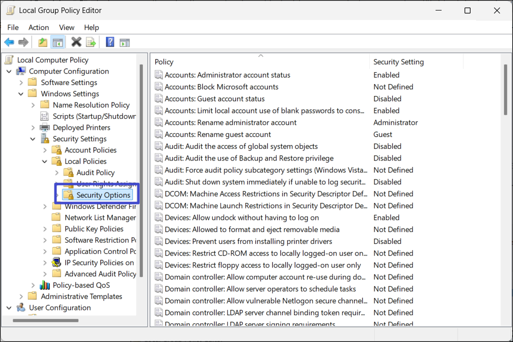 Computer Configuration > Windows Settings > Security Settings > Local Policies > Security Options