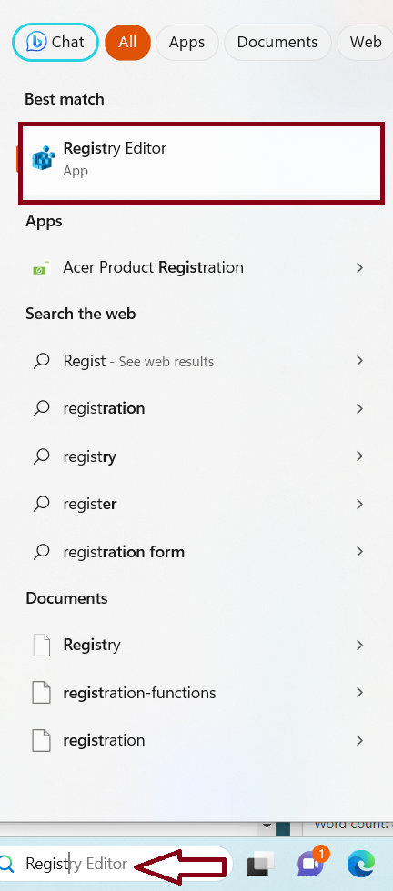 1. Öffnen Sie den Registrierungseditor, indem Sie in der Suchleiste danach suchen.