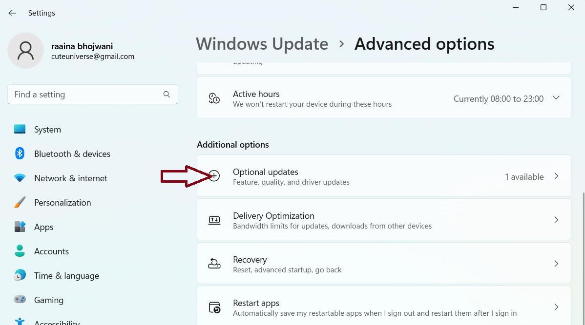 5. Klicken Sie auf optionale Updates und installieren Sie die für Ihren Computer vorgeschlagenen Treiberupdates.