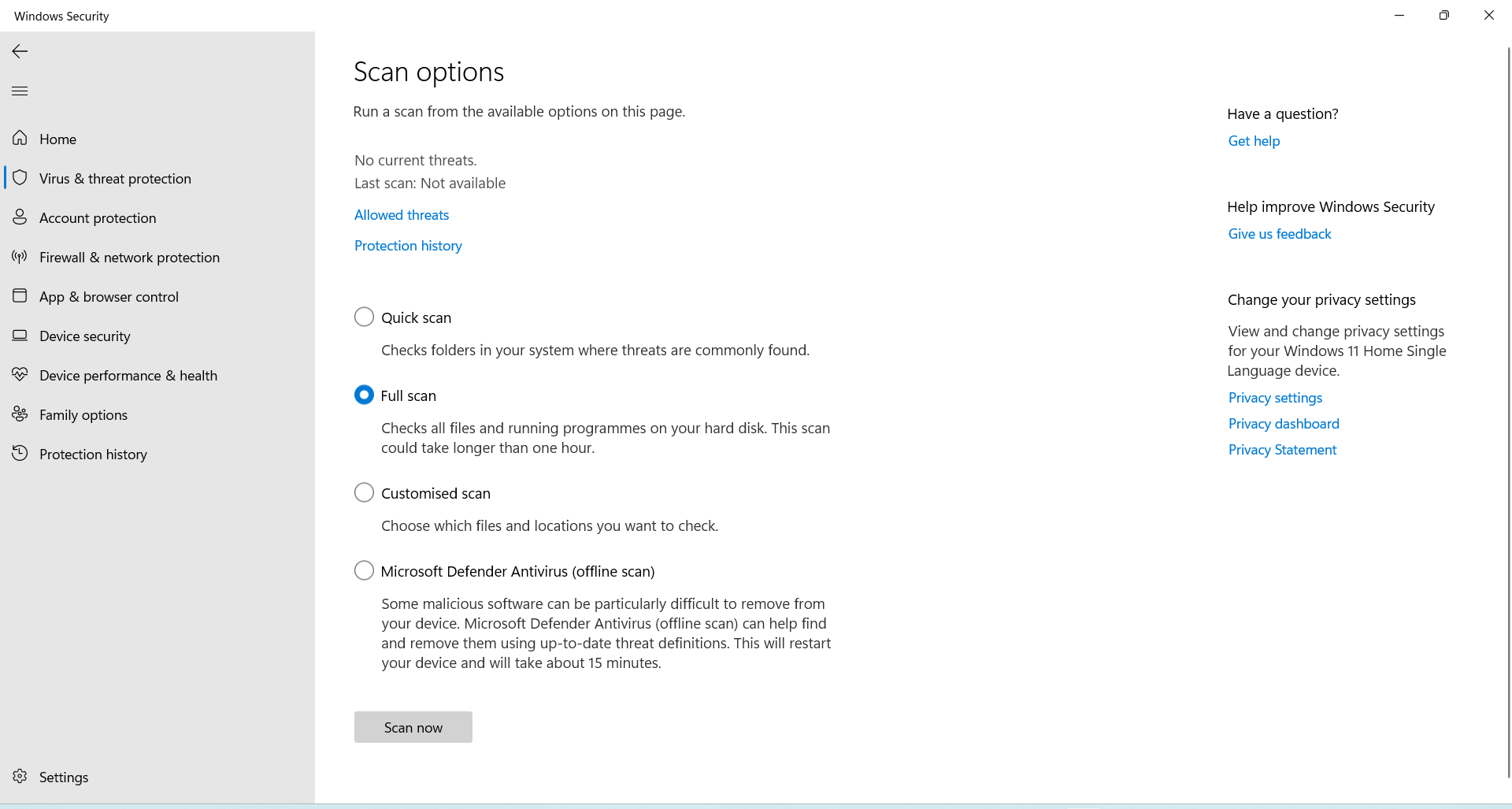 Fix 6: Führen Sie den vollständigen Scan des Windows Defender Antivirus aus, um zu beheben, dass der virtuelle Desktop unter Windows 11 nicht funktioniert