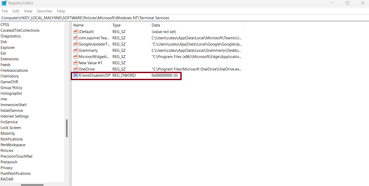 ComputerHKEY_LOCAL_MACHINESOFTWAREPoliciesMicrosoftWindows NTTerminal Services