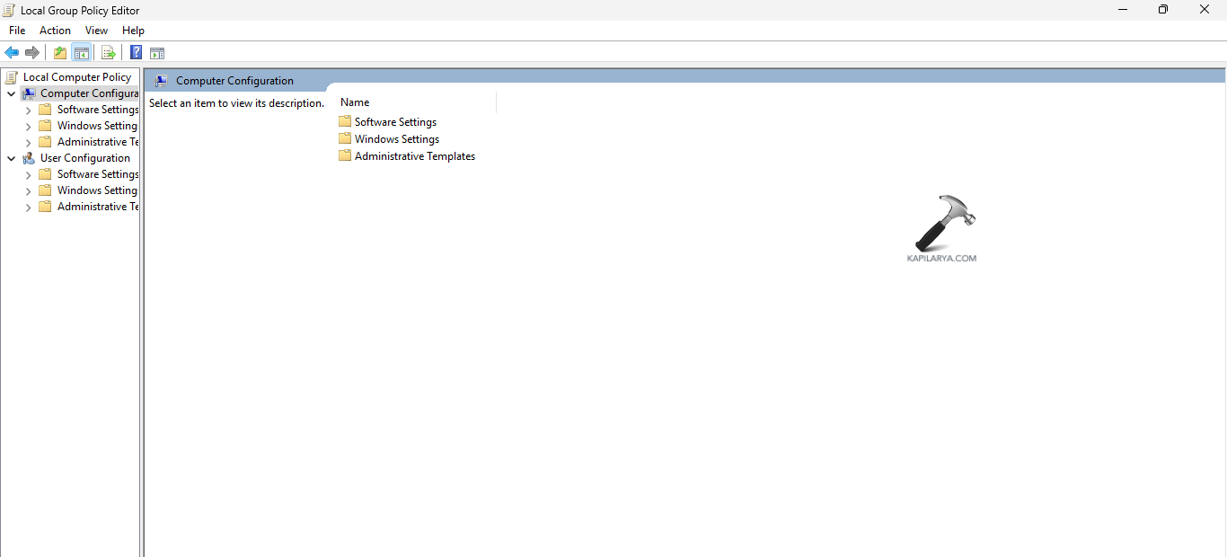 Schritt 2-Wählen Sie nun im Fenster „Lokaler Gruppenrichtlinien-Editor“ die Option „Computerkonfiguration“ aus.