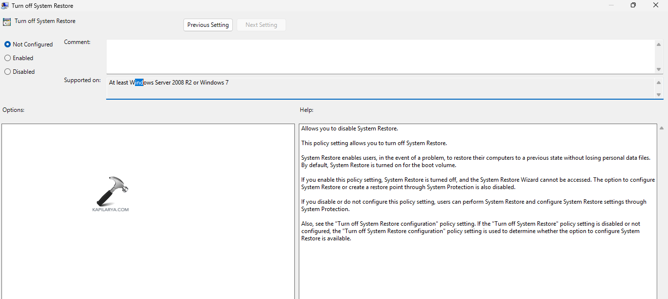 Falsche Systemwiederherstellungseinstellungen können ein weiterer Grund für das Problem sein, dass der Volume Shadow Copy-Dienst nicht funktioniert. Daher kann die Konfiguration der Systemwiederherstellungseinstellungen mithilfe der folgenden Schritte zur Lösung des Problems beitragen