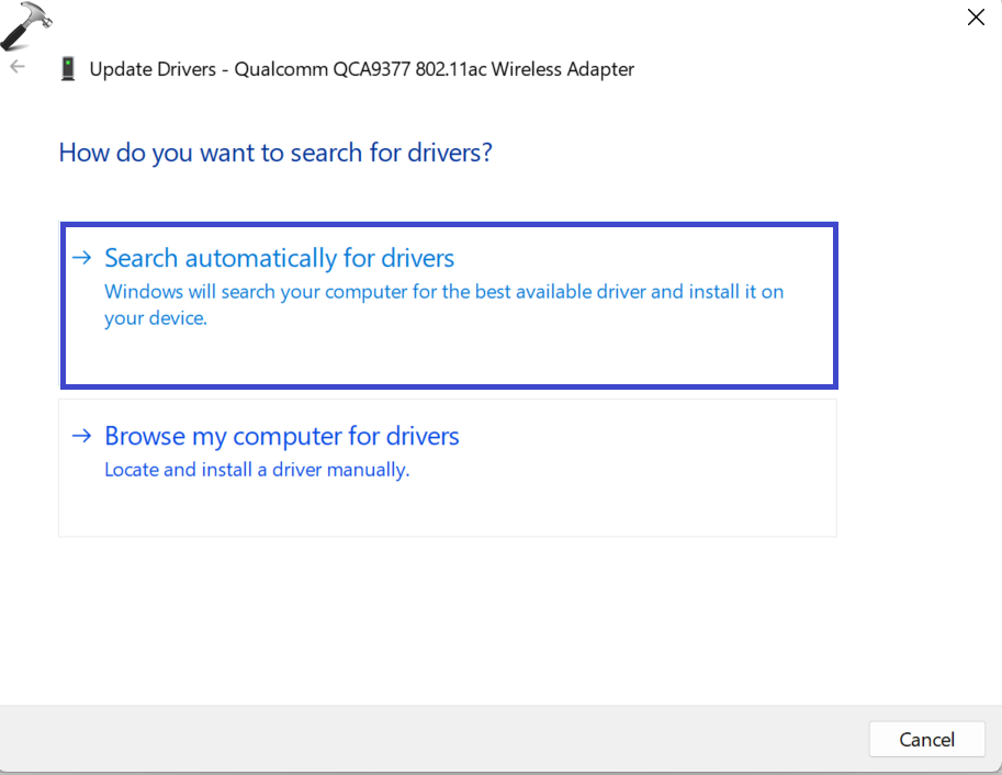 3. Ein Dialogfeld wird angezeigt. Wählen Sie „Automatisch nach Treibern suchen”-Option.
