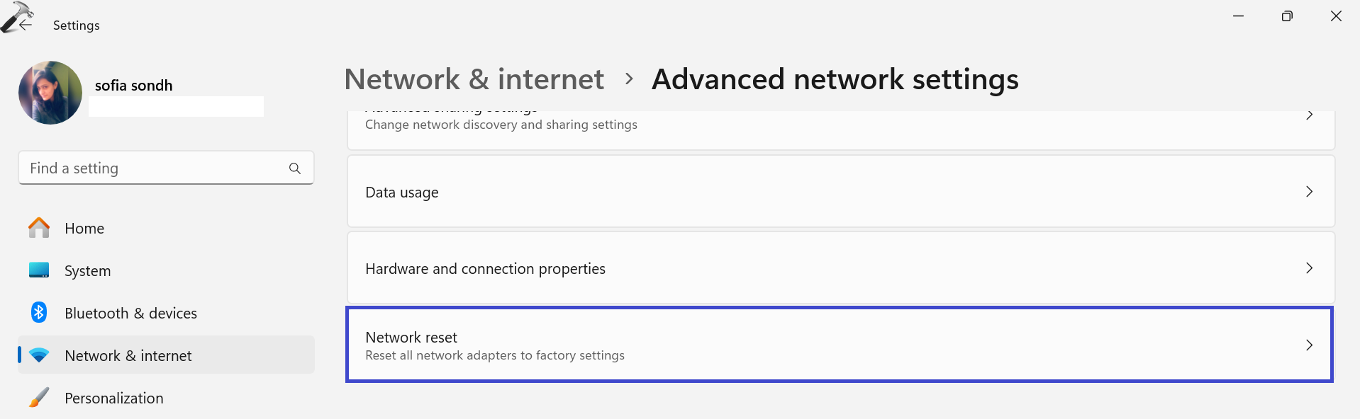 2. Klicken Sie auf „Netzwerk-ResetOption unter „Weitere Einstellungen" Abschnitt.