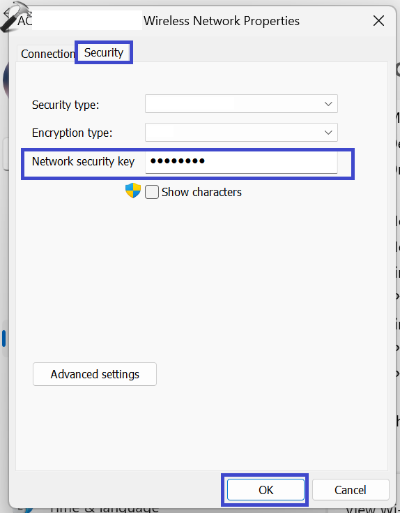 Aktualisieren Sie das WLAN-Passwort oder dasNetzwerksicherheitsschlüssel.Klicken Sie auf OK.