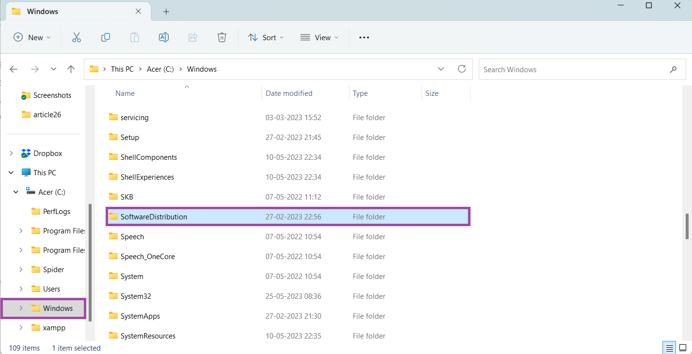Fix 1: Inhalte aus dem SoftwareDistribution-Ordner löschen