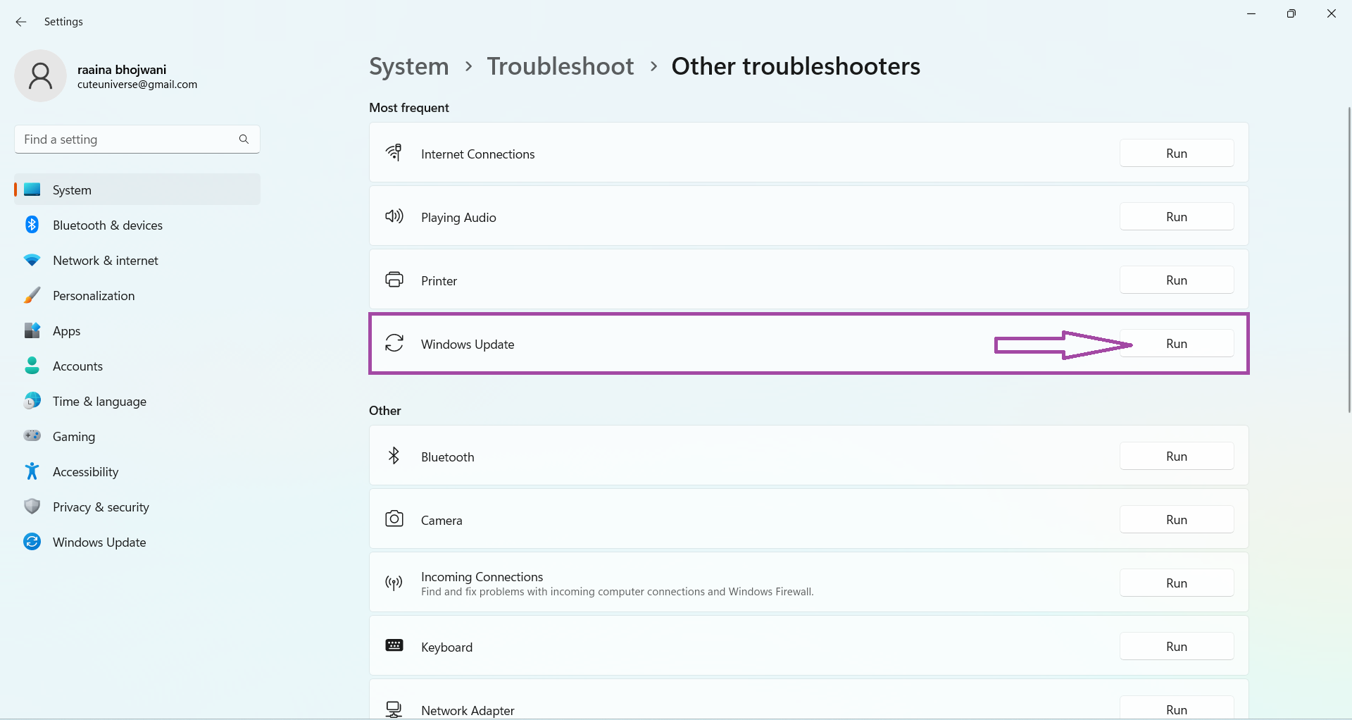 Fix 3: Führen Sie die Windows-Update-Fehlerbehebung aus, um den Fehler „Etwas lief nicht wie geplant“ unter Windows 11 zu beheben