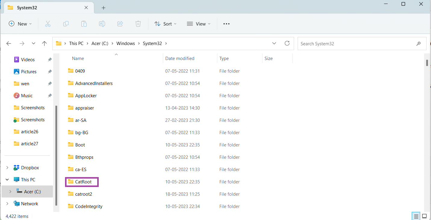 Fix 5: Behebung eines Fehlers unter Windows 11 „Etwas lief nicht wie geplant“ durch Zurücksetzen des CatRoot-Ordners
