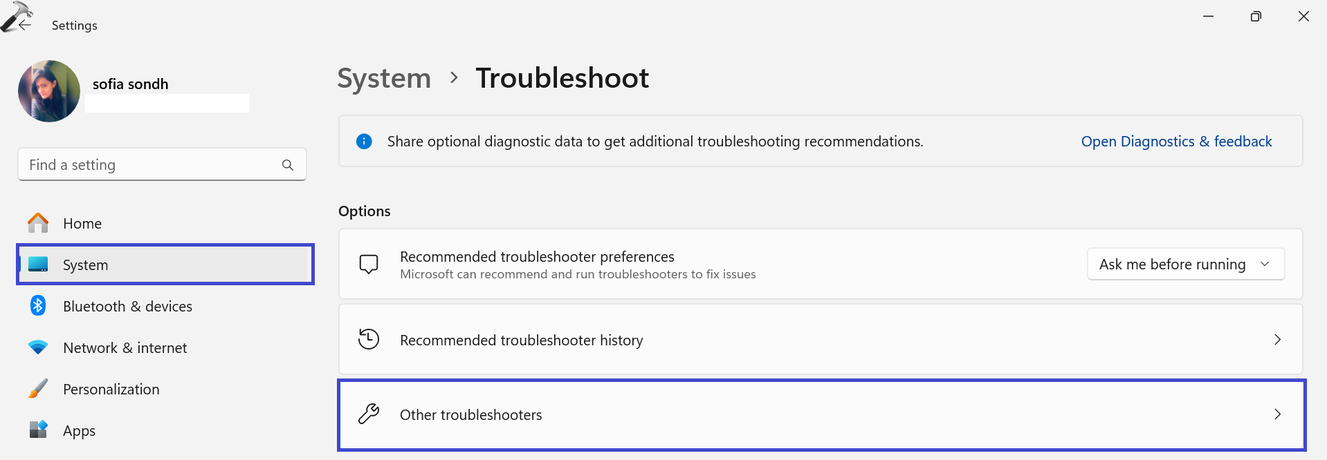 2. Klicken Sie auf „Andere Fehlerbehebungen“.
