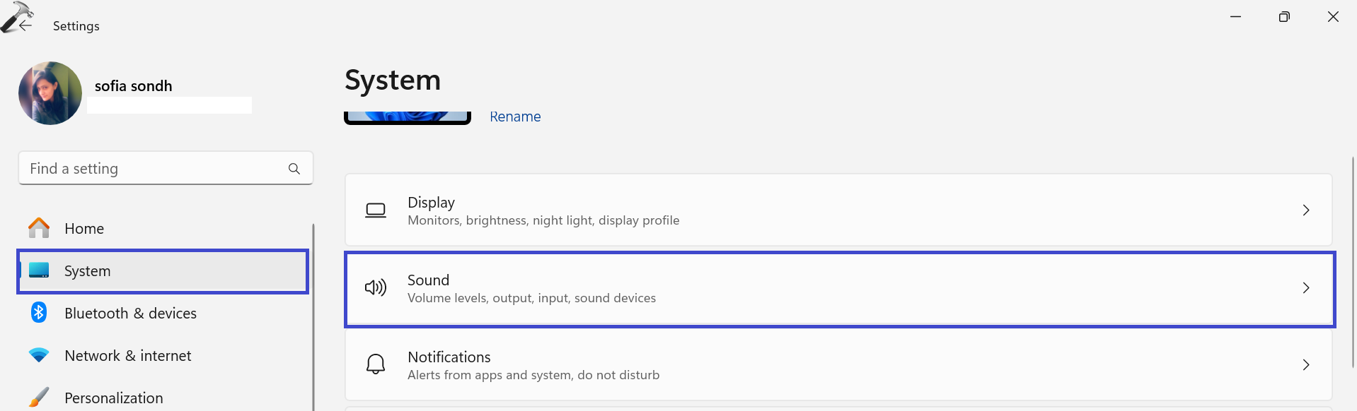 1. Navigieren Sie zu „Einstellungen => System => Ton“.