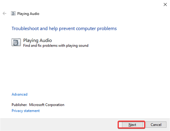 Fix 6: Führen Sie die Audio-Fehlerbehebung aus