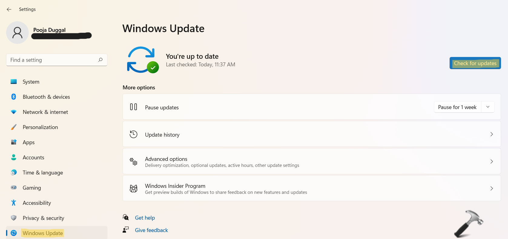 1.Erstens: ÖffnenEinstellungendurch Drücken der TasteWindows + ISchlüssel zusammen auf Ihrem System. Klicken Sie anschließend aufWindows-UpdateTab und wählen Sie ausSuchen Sie nach Updates.