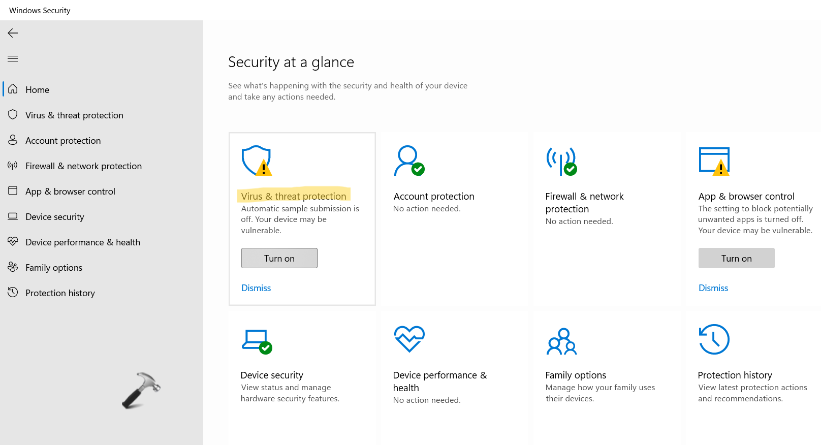 6.Jetzt öffnenWindows-Sicherheitund suchenViren- und Bedrohungsschutz. Klicken Sie nun aufEinschaltenum den Dienst zu aktivieren.