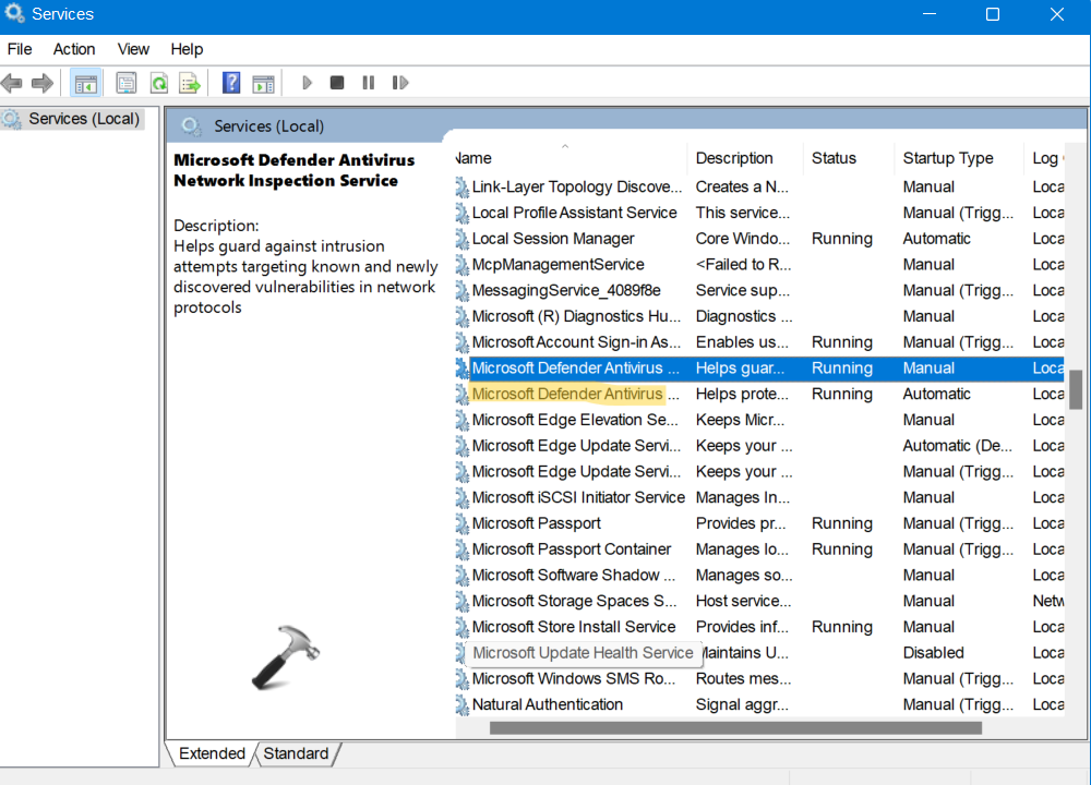 3.Suchen Sie danach nachMicrosoft Defender Antivirus-NetzwerkinspektionsdienstUndMicrosoft Defender Antivirus-Dienstund prüfen Sie, ob ihr Status lautetLäuft.