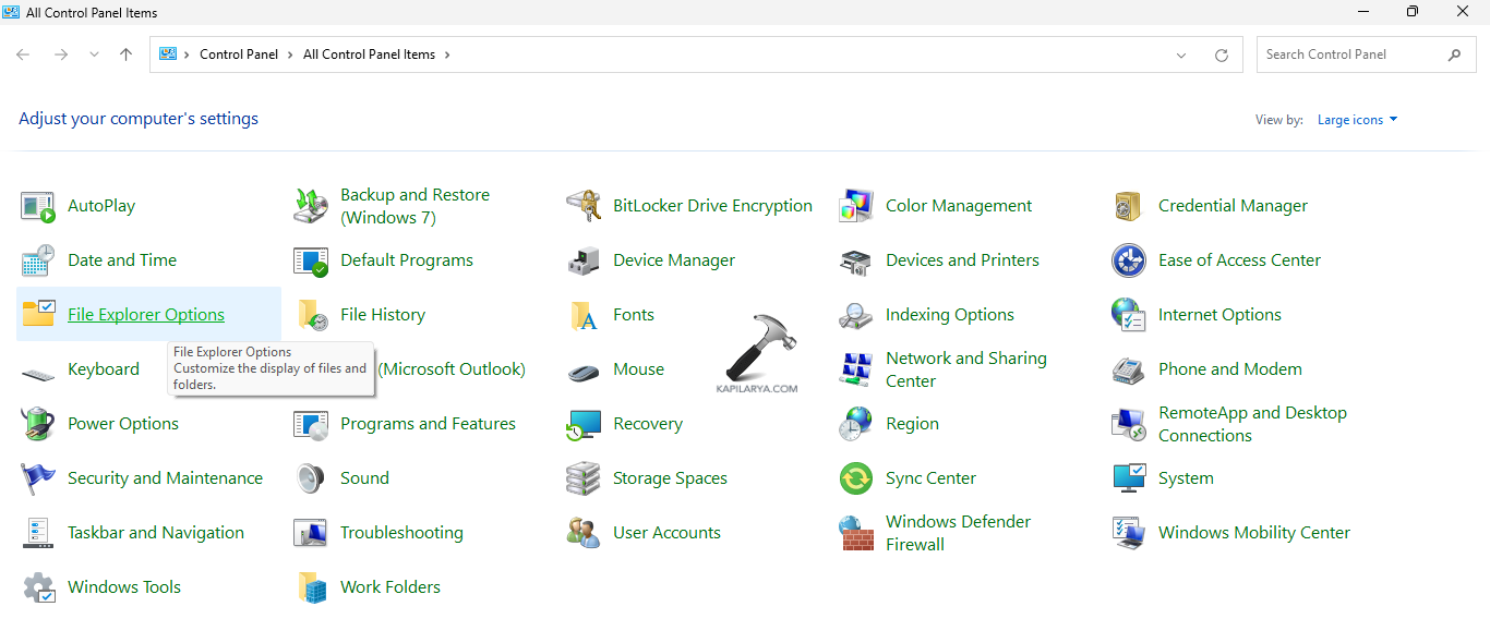 Schritt 1-Öffnen Sie Systemsteuerung > Datei-Explorer-Optionen.